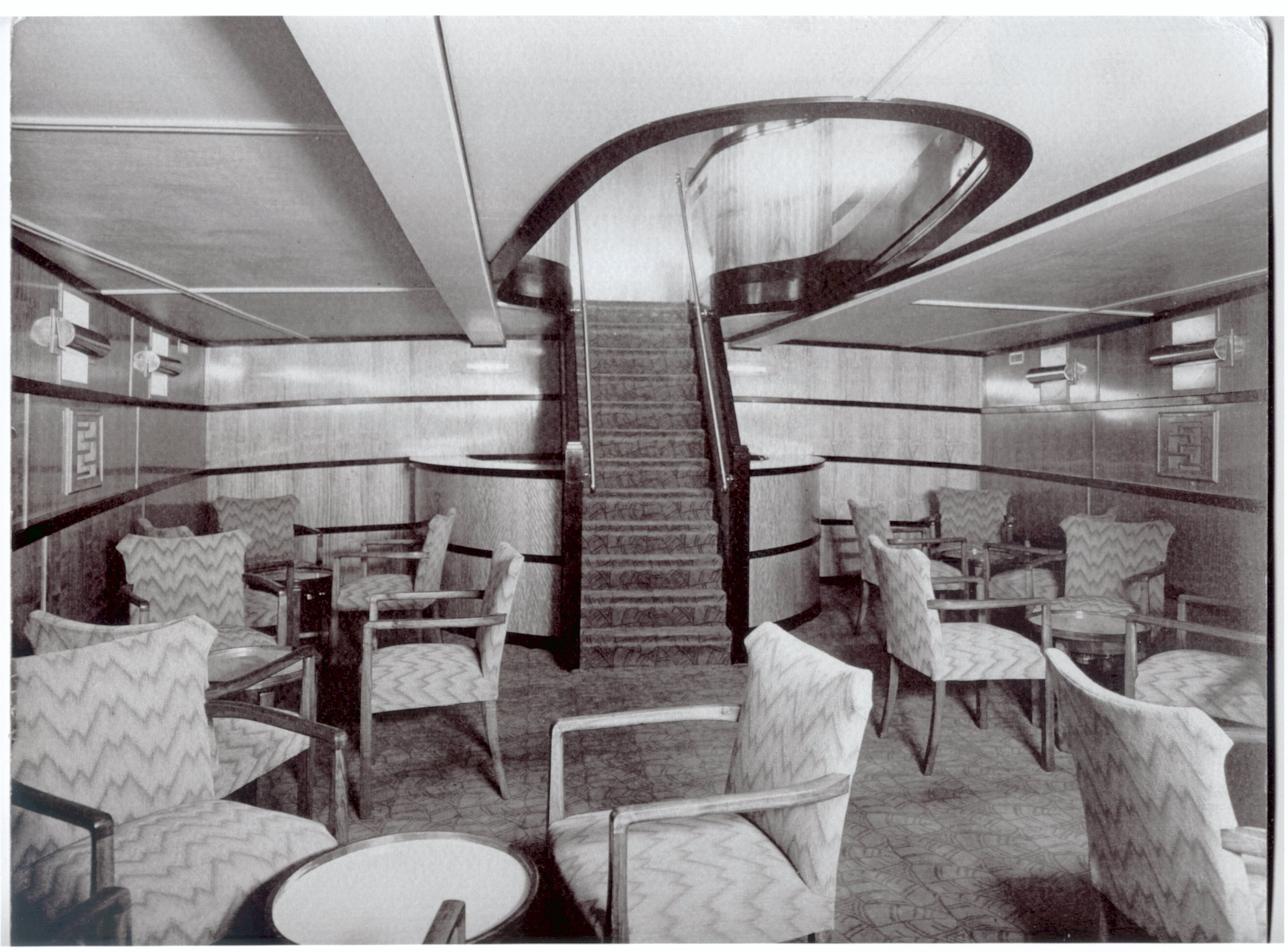 The proposed new interiors had the languid lines and pastel colours of the early 20th century art nouveau style, in keeping with many of the popular liners of the day. However, when the refitted tug was revealed in May 1936, the Heaton Tabb interiors were startlingly different from the original proposals.